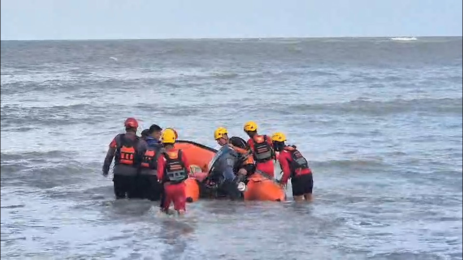 Pada hari pertama pencarian, tim mengerahkan rubber boat dan drone thermal milik Basarnas untuk menyisir perairan dan memantau area dari udara. Cuaca ekstrem dan gelombang tinggi menjadi kendala utama dalam proses pencarian.
