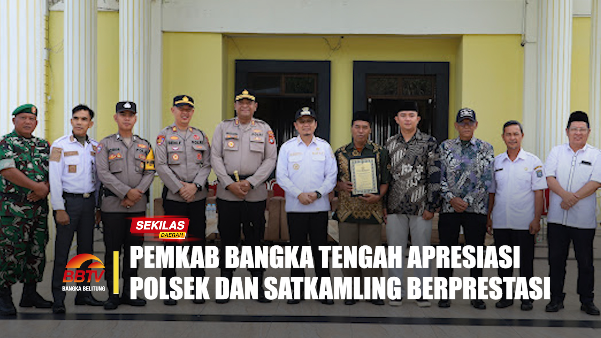 BANGKA TENGAH – Pemerintah Kabupaten Bangka Tengah memberikan penghargaan kepada sejumlah Polsek jajaran dan Satuan Keamanan Lingkungan (Satkamling) sebagai bentuk apresiasi atas peran aktif dalam menjaga keamanan dan ketertiban masyarakat.