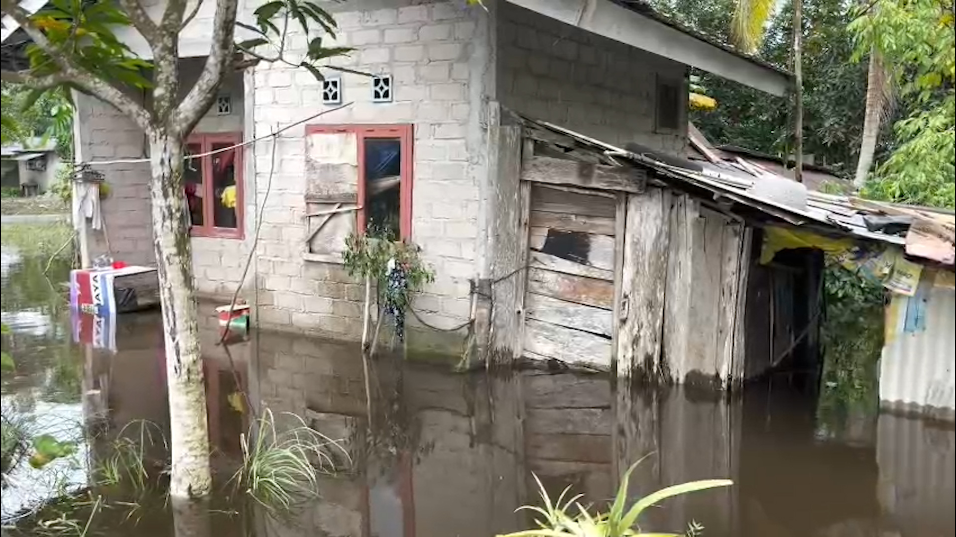 Dari hasil pantauan di lokasi, ketinggian banjir di permukiman warga dilaporkan sudah mulai menyurut. Meski demikian, masih terdapat beberapa rumah warga yang hingga kini tergenang air.