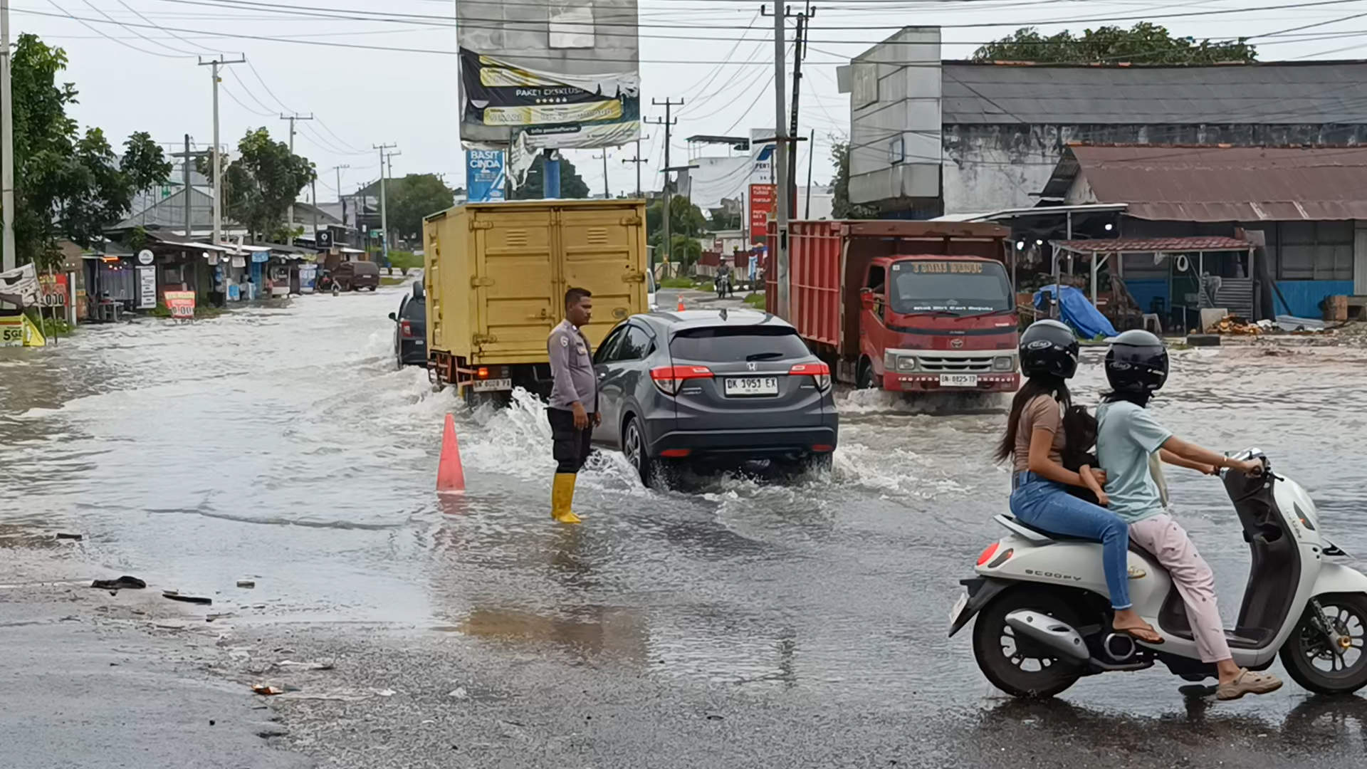 Hingga sore hari, genangan air masih menutup sebagian ruas jalan. Warga dan pengguna jalan diimbau tetap waspada, mengurangi kecepatan kendaraan, serta mematuhi arahan petugas demi keselamatan bersama.(RK)